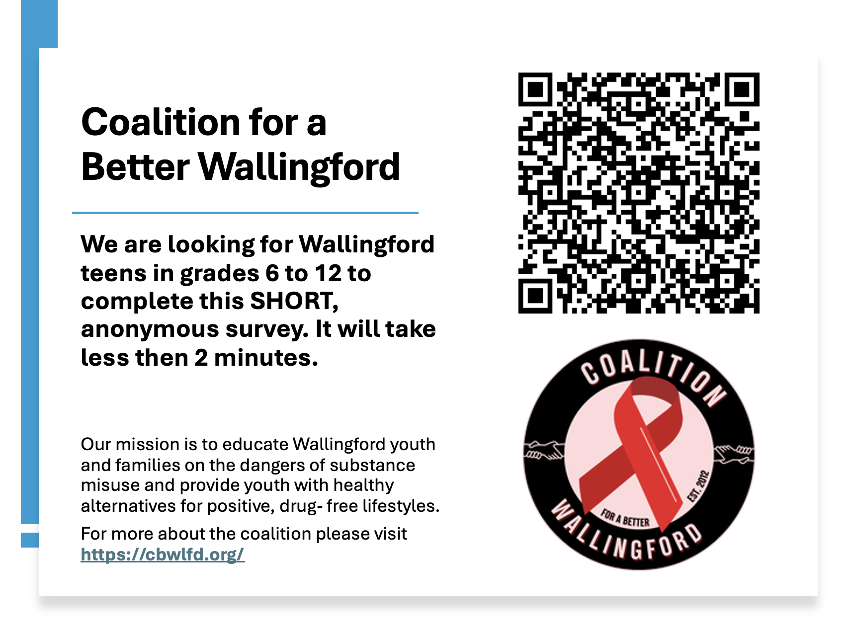We are a 501(c)(3) nonprofit organization dedicated to providing innovative support for families affected by substance use. Our mission focuses on preventing and educating young people and their families, as well as advocating for local, state, and federal resources to combat the effects of alcohol and drug abuse in the Wallingford community.
